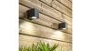 Met deze gevelspots kun je op een leuke en snelle manier prachtige licht decoraties en een sfeervolle tuin creëren. De wandlampen schijnen het licht naar boven of naar beneden en zullen zowel voor een praktische als sfeervolle verlichting rondom het huis zorgen. Met deze wandlampen kun je op eenvoudige wijze een deur, een pad of een muur uitlichten, maar ook het terras, de tuinafscheiding of de overkapping. De wandlampen hebben als groot voordeel dat niet te veel ruimte in beslag nemen, snel te plaatsen zijn en veel sfeervol licht geven. De spots zijn spatwaterdicht afgewerkt, volledig dimbaar en te gebruiken met ieder halogeen of led lampje van het type GU10. Afmeting ca 7 x 7 x 9 cm. Spatwaterdicht: Ja, IP54. Past ook zeer goed bij de Wallilight 2.0 wandlamp (ook te zien in deze veiling) Gratis verzending Benelux.