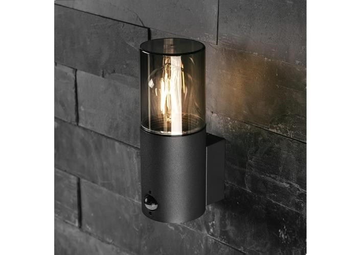 Deze zeer bijzondere gevel lampen passen goed in een modern alsook klassiek huis. Het licht van deze prachtige wand lampen schijnt zowel omhoog en rondom en zorgt dankzij de transparante rookglas diffusor voor een prachtige sfeer. De lampen kunnen hun plek vinden bij de voordeur, aan de zij of achtergevel, aan de garage, aan het tuinhuis of de tuinafscheiding. De lampen zijn snel zelf zelf te plaatsen, zijn dimbaar en dankzij de spaterwaterdichte afscherming geschikt voor alle plekken buitenshuis. De armaturen kunnen worden gebruikt met iedere lampje met een grote fitting en zijn tevens smart te maken. Deze combinatie beschikken over bewegings detectie. Afmeting ca 12 x 22 x 9 cm. Kleur: Grafiet Zwart, Afwerking: Mat. Diffusor: Rookglas, Spatwaterdicht: Ja, IP54, Type: Wand armatuur, Bijzonderheden: Dit product is volledig nieuw