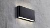 Deze prachtig vormgegeven wandspots schijnen het licht op een zeer sfeervolle manier zowel naar boven en naar beneden. Het grote voordeel van deze armaturen is dat ze slechts 3 cm uit de wand steken waardoor ze weinig ruimte in beslag nemen en op een subtiele wijze in de ruimte aanwezig zijn. De wandlampen kunnen perfect in de aan de voor of achter gevel, in de serre, aan de tuinafscheiding of op het terras worden gebruikt, maar kunnen ook in de woonkamer, de keuken de gang of de badkamer van extra sfeerlicht voorzien. De armaturen zijn snel en eenvoudig te monteren zullen in iedere ruimte voor een chique en unieke uitstraling zorgen. Lichtsterkte 2 x 6 Watt Led. Kleur behuizing: Zwart Afwerking: Mat. Afscherming: IP54 spatwaterdicht. Licht kleur: warm wit. Afmeting ca.: 17 x 9 x 3 cm.