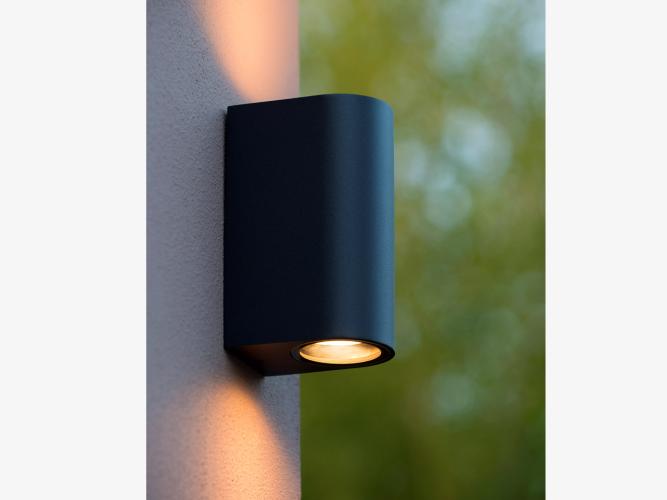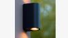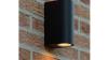 Met deze gevelspots kun je op een leuke en snelle manier prachtige licht decoraties en een sfeervolle tuin creëren. De wandlampen schijnen het licht zowel naar boven als naar beneden en zullen zowel voor een praktische als sfeervolle verlichting rondom het huis en tuin zorgen. Met deze wandlampen kun je op eenvoudige wijze een deur, een pad of een muur uitlichten, maar ook het terras, de tuinafscheiding of de overkapping. De wandlampen hebben als groot voordeel dat niet te veel ruimte in beslag nemen, snel te plaatsen zijn en veel sfeervol licht geven. De spots zijn spatwaterdicht afgewerkt, volledig dimbaar en te gebruiken met ieder halogeen of led lampje van het type GU10. Afmeting ca 8 x 7 x 15 cm. Spatwaterdicht: Ja, IP54, Kleur: Zwart mat.