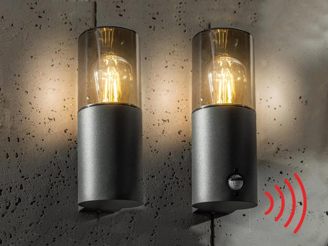 Deze zeer bijzondere gevel lampen passen goed in een modern alsook klassiek huis. Het licht van deze prachtige wand lampen schijnt zowel omhoog en rondom en zorgt dankzij de transparante rookglas diffusor voor een prachtige sfeer. De lampen kunnen hun plek vinden bij de voordeur, aan de zij of achtergevel, aan de garage, aan het tuinhuis of de tuinafscheiding. De lampen zijn snel zelf zelf te plaatsen, zijn dimbaar en dankzij de spaterwaterdichte afscherming geschikt voor alle plekken buitenshuis. De armaturen kunnen worden gebruikt met iedere lampje met een grote fitting en zijn tevens smart te maken. Deze combinatie bestaat uit 4 standaard lampen + 4 lampen met bewegings detectie. Afmeting ca 12 x 22 x 9 cm. Kleur: Grafiet Zwart, Afwerking: Mat. Diffusor: Rookglas, Spatwaterdicht: Ja, IP54, Type: Wand armatuur, Bijzonderheden: Dit product is volledig nieuw.