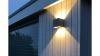 Deze bijzondere wand spots passen goed aan zowel een modern als klassiek huis en kunnen aan de voorgevel, de achtergevel, de tuinafscheiding, onder de overkapping of aan het tuinhuis worden gebruikt. Het licht van deze prachtige wand spots schijnt niet alleen naar boven en naar beneden, maar kan zowel naar boven als naar beneden breder en smaller gemaakt worden. Zo kun je zelf creatieve lichtpatronen maken die in iedere ruimte net even anders zijn. De armaturen zijn voorzien van een bewegings detector en voorzien van een duurzaam spatwaterdicht led lampje met een warm witte lichtkleur en een sterkte van 8 Watt Led. De wandlampen zijn eenvoudig te monteren en geschikt voor alle vochtige maar ook droge alle ruimtes in huis: Afmeting: ca 10.5 x 10.5 x 10.5 cm. Kleur: Zwart., Afwerking mat. Spatwaterdicht: Ja, IP54, Type: Wand armatuur, met bewegingsmelder, PIR detectie: ca 5 m. Lichtkleur 3000K, warm wit. Verstelbaar: Ja.