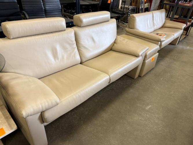 Lederen 3- zit zetels, fabr. DURLET, beige kleur waaronder één met 2 hoofdkussens