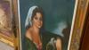 Vintage olieverf schilderij met houten kader snijwerk - vrouw met waterkan