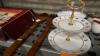 Vintage servies : koffiekopjes - borden - soepkom - koekjes plateau - houten lepel en vork - servies voor ijsjes