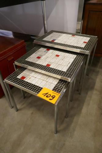 Trio bijzettafeltjes met bovenblad in mozaiek