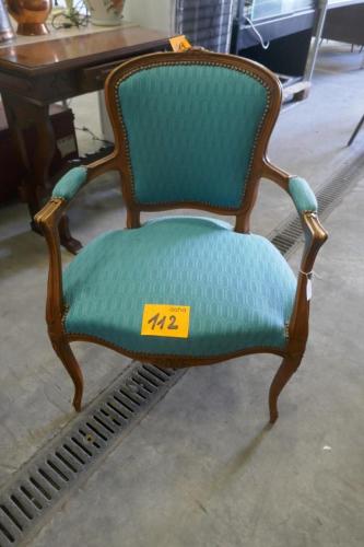 Antieken stoel met armleuningen en stoffen bekleding ( nog in perfecte staat )