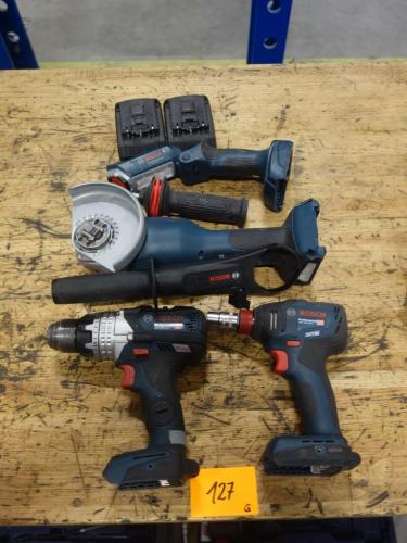 boormachine GSR, slagmoersleutel GDX, haakse slijper GWX, zaklamp GLI, 2x accu, lader,...