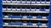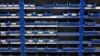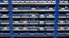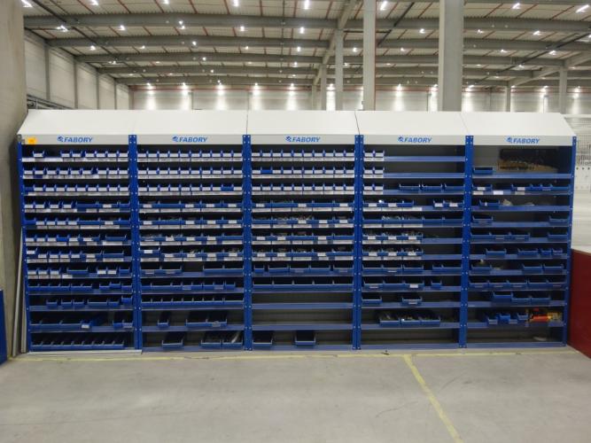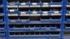 vv. plm 250 sorteerbakjes van verschillende grote, gevuld met grote partij ijzerwaren. 5 keer 2250x300x1000