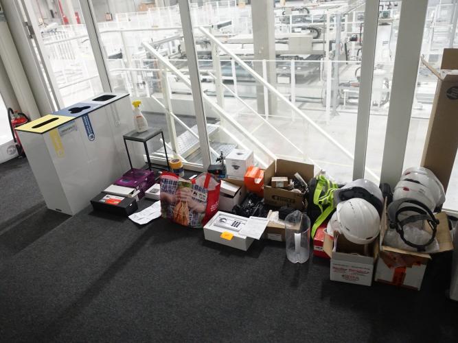 oa: afvalbak , kluis, werkmateriaal, meters , .....