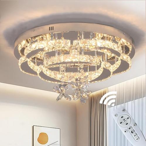 Ongeopend, in seal, Vinilky Kroonluchter kristal met afstandsbediening, dimbare kristallen kroonluchter moderne vlakke LED-verlichting chroom plafondlamp voor woonkamer, eetkamer, slaapkamer, keuken, entree, hal, B0DP2TP2BY