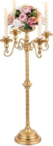 Sziqiqi Kandelaar van metaal, voor bruiloft, 85 cm, kandelaar met 5 armen, met vaas voor bloemen, decoratief, bruiloft, receptie, feest, Kerstmis, verjaardag, ceremonie, goud, B0C4DRSFG4