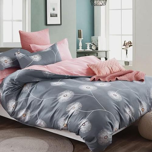 Ongebruikt, ok, Beddengoed 135 x 200 cm, katoenen set, 4-delig, grijs-roze bloemenpatroon, omkeerbaar beddengoed met ritssluiting, zachte stofkwaliteit voor meisjes 135 x 200 cm + 80 x 80 cm x 2, B09TZNDX7Y