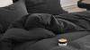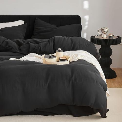Lichte gebruikssporen, KEAYOO Mousseline Beddengoed 135 x 200 cm met een kussensloop 80 x 80 cm van 100% katoen - fantastisch zacht (zwart, 135 x 200 cm), B0CRTPYF39