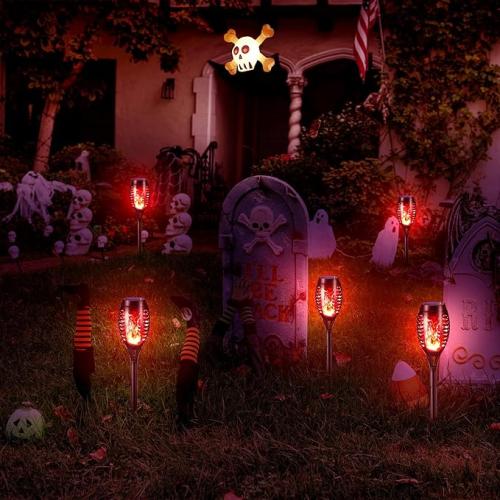 Gebruikssporen, getest, 5 ipv 6 stuks, Geemoo Tuinfakkels op zonne-energie, 6 stuks zonne fakkel, met realistisch vlameffect, IP65 waterdicht, voor buiten, achtertuin, tuinen, gazonverlichting - Rood, B0CQXC75DD