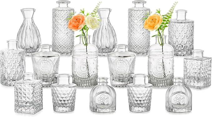 Ongebruikt, ! 2 stuks te kort ! , Kleine glazen vaas voor tafeldecoratie - set van 16 mini-knopvazen, vintage heldere bloemenvaas, bruiloft tafelstukken, kristallen smalle halsflessen, zoete erwtenvaas voor bloemstuk, B0CDPSSNF1