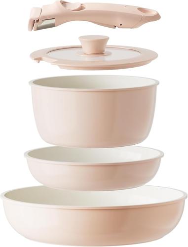 Ongebruikt, ok, compleet, Redchef Keramische Kookgerei Set Afneembare handgreep, anti-aanbak pannen, RV kookgerei set, niet-toxisch, geen PFAS & PTFE & PFOA, vaatwasser & ovenbestendig (Roze), B0D3XNCZR5