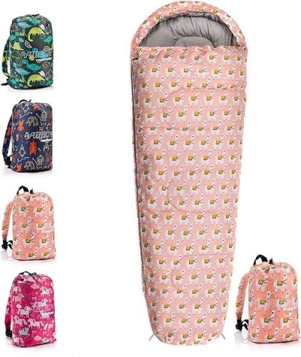 Minieme gebruikssporen, ok, Slaapzak voor Kinderen - Mummieslaapzak met capuchon - kamperen reizen festival outdoor camping toerisme - met Rugzak, B09B9TMW48