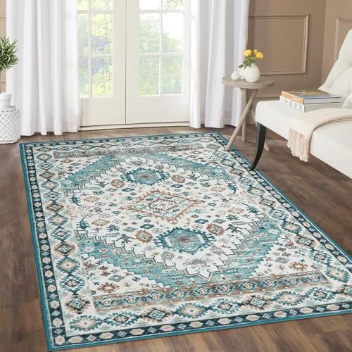 Ongeopend, LuxFocus Machine wasbaar tapijt, 80 x 150 cm, traditioneel Oosters tapijt, antislip, laagpolig, woonkamer, vloermat, keukentapijt met boho-bedrukt patroon, voor binnen, mat, groen , B0C89JN4P4