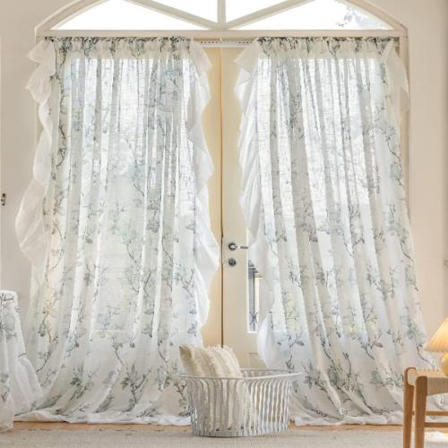 Ongeopend, Freyamy Transparante gordijnen, set van 2 voile-gordijnen, blauw, bloemen, gordijnen met ruches, doorschijnend, r, raamdecoratie, gordijnen, B132xH213 B0C3R6PQ9H