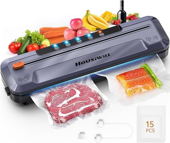 Ongebruikt, getest en werkend, volledig, ok, Housiwill Vacuümmachine, 5-in-1 vacuümapparaat met ingebouwde cutter, vacuümmachine voor levensmiddelen voor Dry/Moist Food Preservation Mode, met 15 vacuümzakken en 1 slang, B0CGN38YNS
