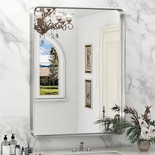 Ongeopend, antok Decoratieve wandspiegel, zilver, 60 x 80 cm, rechthoekige spiegel, wandspiegel met metalen frame, B0CSFBGBNC