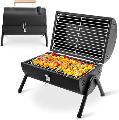 Ongebruikt, ok, lichte deukjes in omhulsel (zie foto's), bouten ontbreken, DOKKOME BBQ-grill, draagbaar, houtskoolgrill, inklapbaar, campinggrill, dubbelzijdig rookgrill voor outdoor en tuin, outdoor, camping, wandelen, picknick, zwart, B0DSL9ZZ1R