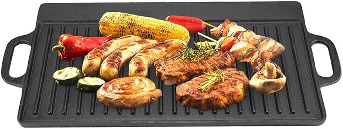 Ongebruikt, ok, Gietijzeren grillpan met antiaanbaklaag Dubbelzijdige barbecue IJzeren plaat Gietijzeren grillpannen Rechthoekige grill met twee handgrepen Bakvorm, B08L6RBQCW