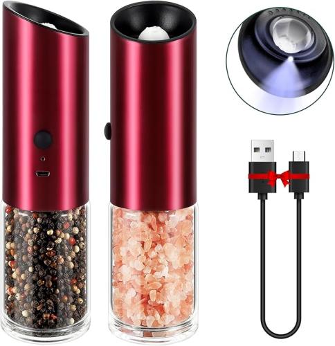 Ongeopend, ok, Vzaahu Elektrische Zout- en Pepermolen Set van 2, Oplaadbare USB, Instelbare Grofheid, Rode Kleur, Werkt op Batterijen, Elektrische Kruidenmolen Shaker met Licht, B09DSF2RYS