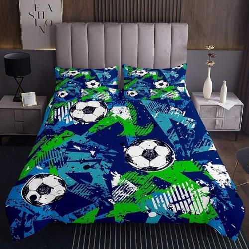 Ongeopend, ok, Loussiesd Hippie Graffiti Quilt Voetbal Bedsprei Aquarel Voetbal Sport Bedsprei voor Kinderen Jongens 3D Voetbal Quilt Set Voetbal 3-delig Dubbel 220 x 240 cm, B08K92MN8H