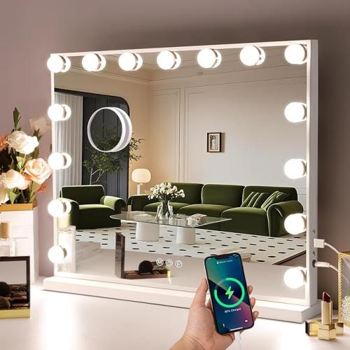 Ongeopend, in seal, Hansong Make-upspiegel met verlichting, Hollywood-make-upspiegel met 15 ledlampen, 3 kleurverlichtingsmodi, verlichte make-up, tafelspiegel voor kleedkamer, slaapkamer, B09CGJKVBL