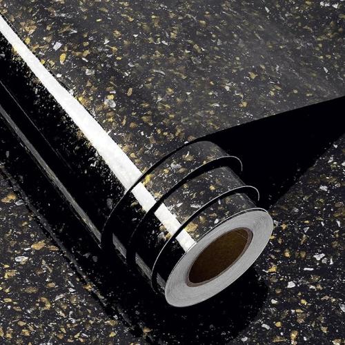 Ongeopend, ok, 3 x FunStick 60CM×5M Meubelfolie Terrazzo Zwart Muursticker Keuken Vinyl Fotobehang Zwart Goud Waterdichte Folie Zelfklevende Keuken Backwall Zelfklevende Kast Zwart Terrazzo Marmer Meubilair Tafel, B0CSK6JCJ6