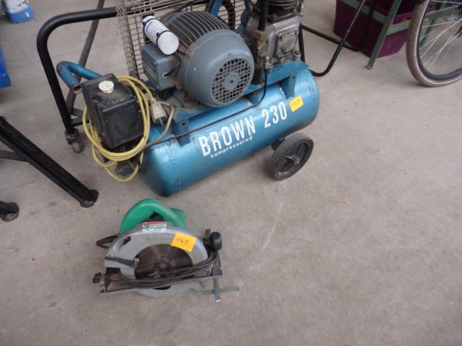 zaagmachine HITACHI + compressor BROWN