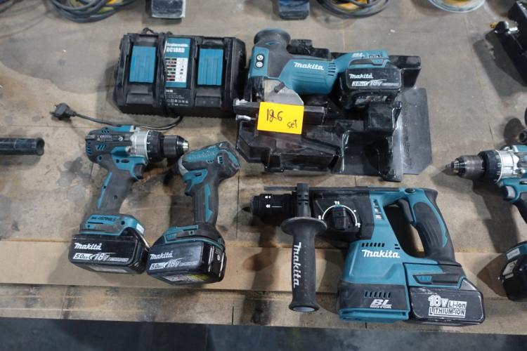 2x Schroef/ vijsmachine , decoupeerzaag, Boorhamer , 4x accu , 1x lader