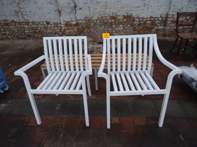 2x Metalen stoel + metalen bank