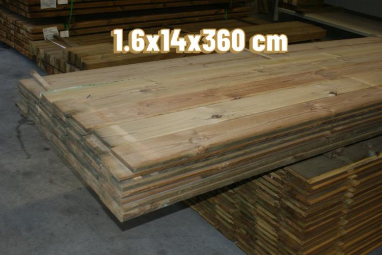 60x Plank, geïmpregneerd grenen, 1,6x14x360cm met vier afgeronde hoeken