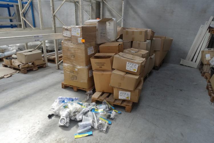 het voorbeeld op de grond zijn de zaken die verdeeld zijn over de paletten in het lot
