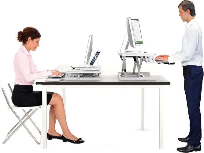 Ongebruikt, ok, bonVIVO Sit-Stand Werkstation, in hoogte verstelbaar bureau-opzetstuk met geïntegreerde gasveer, zit-sta bureau opzetstuk, 95cm breed x 40cm diep, wit B08DTXN2MQ