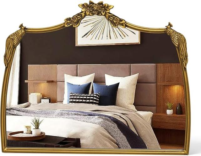 Ongebruikt, ok, Awhtixbo Antieke gouden barok spiegel met gebogen design, vintage ronde gouden frame, wandspiegel voor hal, woonkamer en badkamer, afmetingen: 48 x 61 cm, B0DW7RSY61