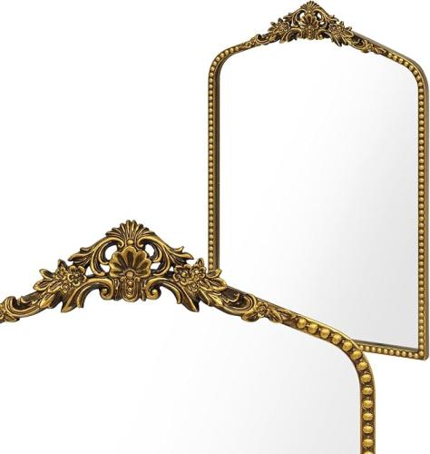 Ongebruikt, ok, Awhtixbo Antieke gouden barokke spiegel met gebogen design - vintage ronde gouden frame wandspiegel voor hal, woonkamer en badkamer, afmetingen: 48 x 71,5 cm, B0DW84M1B6