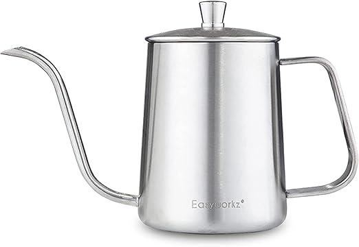 Ongebruikt, ok, Easyworkz Giet over Waterkoker Roestvrij Staal Zwanenhals Lange Smalle Druppeluitloop Koffie Pot 600ml (Zilver), B0BB1LMD74