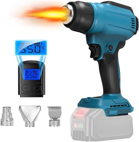 Ongebruikt, getest en werkend, volledig, ok, exclusief batterij en lader, Heteluchtpistool compatibel met Makita 18V accu, 2-traps accu, heteluchtföhn met temperatuur- en batterij-indicator, haak en 3 sproeiers voor het drogen, buigen van buizen, kleurverwijdering, B0CW694CX1