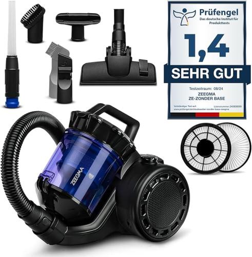 Intensieve gebruikssporen, getest en werkend, extra zuigkoppen ontbreken, ok, ZEEGMA Zonder Base cycloonstofzuiger, zakloos, 899W, Regelbare zuigkracht, Stofcontainer 2.5L Energieklasse A, Eenvoudig systeem om te legen Rubbere wielen, 2 HEPA H13 filters wasbaar, Stil, Rijke set,B083QFRGKX