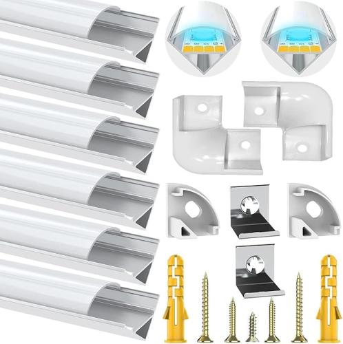 Ongebruikt, volledig, ok, Chesbung Led-aluminium profiel, 1 m, U-vormige ledkanalen voor ledstrips/band tot 12 mm, incl. led-profielen met melkwitte afdekking, led-diffusers met eindkappen, montageclips en hoekverbindingen, B07PRJ95YD