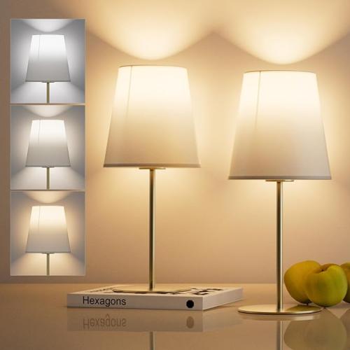 Ongeopend, in seal, Coinmit LED dimbare tafellamp met afstandsbediening, draadloos bedlampje met witte linnen kap, metalen sokkel, goud, 2 stuks, B0C616NQ9S