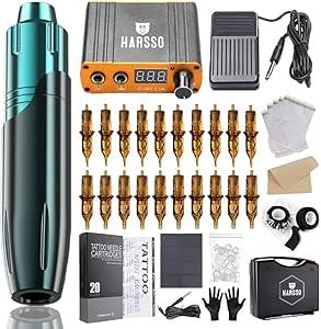 Ongeopend, in seal ,Harsso Tattoo Rotary Pen Machine Kit met 20 patroon naalden/voeding/voetpedaal/Fake Haut en doos, complete Tattoo Kit , B0962S8398