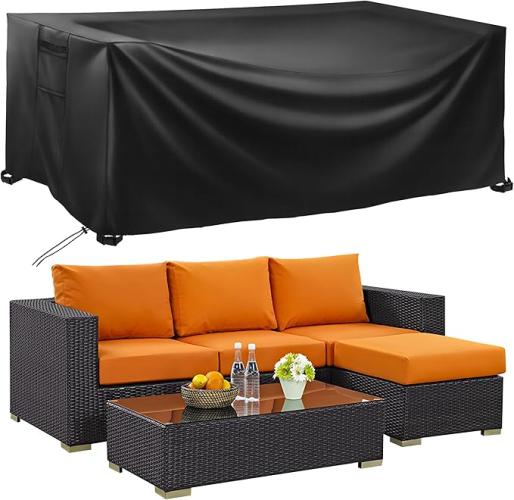 Ongeopend, bemece Tuinmeubelafdekking, met verborgen ventilatieopeningen, 420D Oxford-weefsel, beschermhoes voor tuintafel, stoelen, bank (250 x 250 x 90 cm), B0CHDW4TJ3