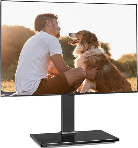 Ongebruikt, volledig, ok, FITUEYES TV-tafelhouder voor schermen van 68,6 cm tot 139,7 cm (27 tot 55 inch) tot 40 kg, tv-beugel met verstelbare hoogte en draaifunctie, universele tv-houder met glazen basis, max. VESA 400 x 400,B07V4JNK5H
