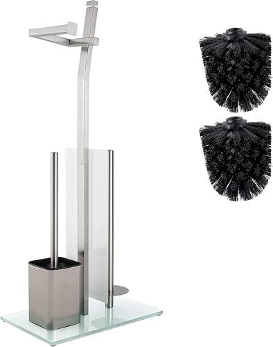 Ongebruikt, ok, volledig, Smartpeas Toiletrolhouder - Borstelde Chroom - Toiletpapierhouder - Roestvrij Staal Chroom Vergulde Gratis Met Glazen Basis - Maat 32X20X70 Cm - Plus: 1+2 Extra Toiletborstelkoppen Uitwisseling,B08DG62S5M