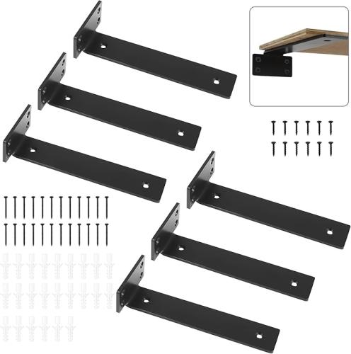 Ongeopend, in seal, AZKEEGREY plankhouders (6 stuks), zwart, 20 cm met schroeven, wandhouder, plankdrager, hoek voor zware belasting, plankhoek voor wandmontage, B0D1CC36DS